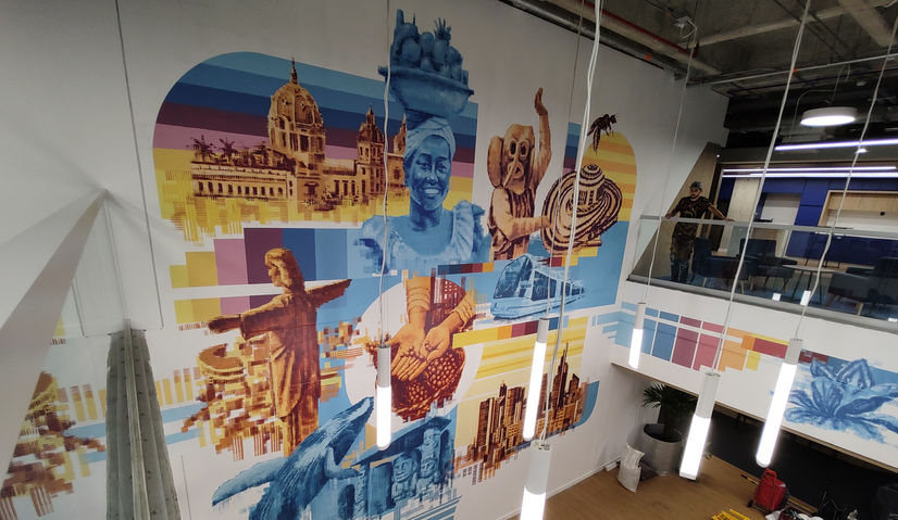 2024 - Una obra con mucho color y movimiento en el Showroom de las nuevas oficinas de la @sociedadtequendama. Medellín